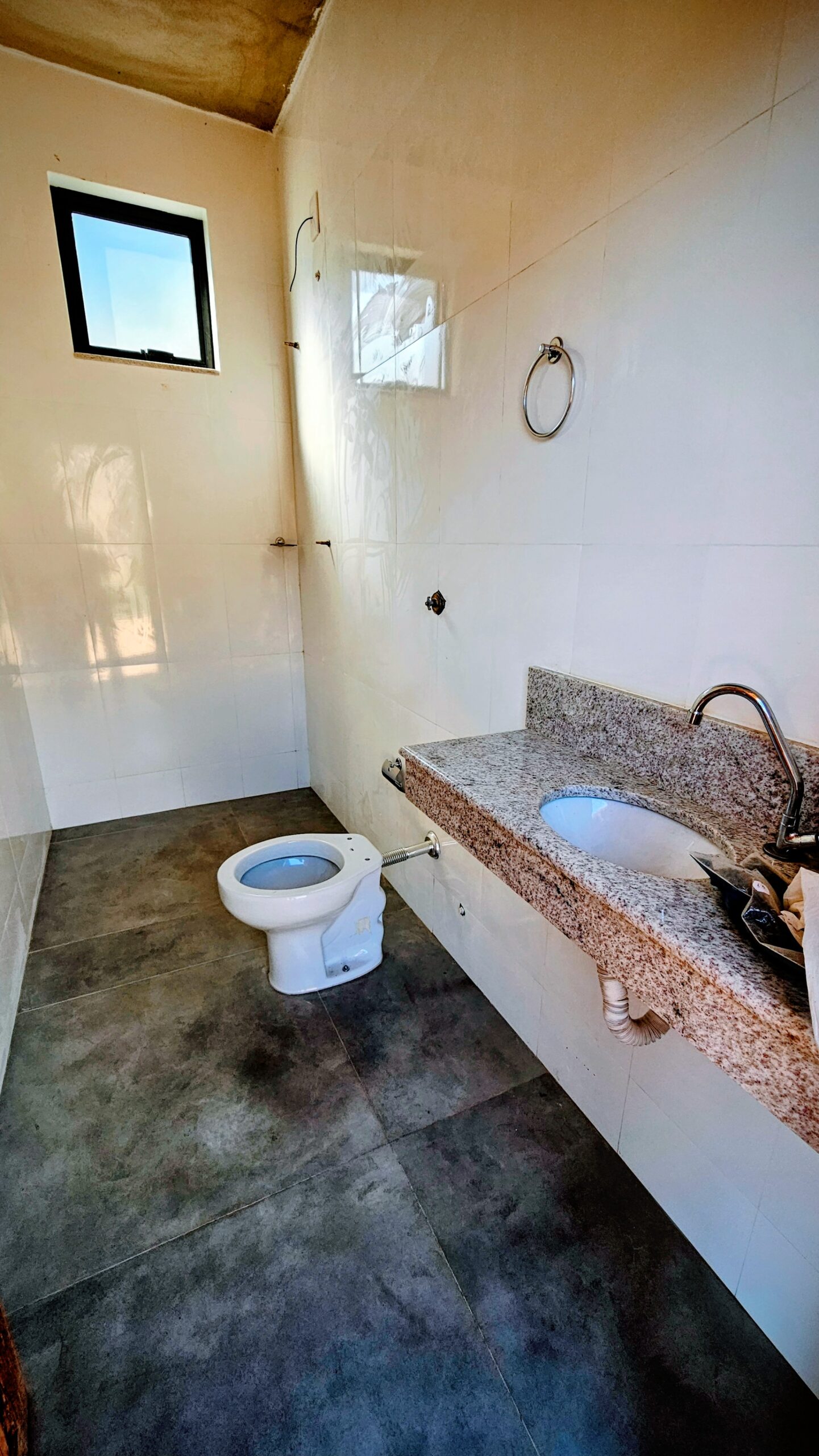 Chácara em condomínio fechado na região do Parque das Águas, com uma casa edificada, com 3 Quartos, sendo um Suíte, um Banho social, uma sala grande conjugada com cozinha Gourmet,  já com embosso e piso grosso feito, com acabamento a ser concluído ao gosto do comprador. Localizada na parte alta do condomínio, tendo uma vista privilegiada. Condomínio com muito paisagismo e dois belos lagos com muitos peixes.